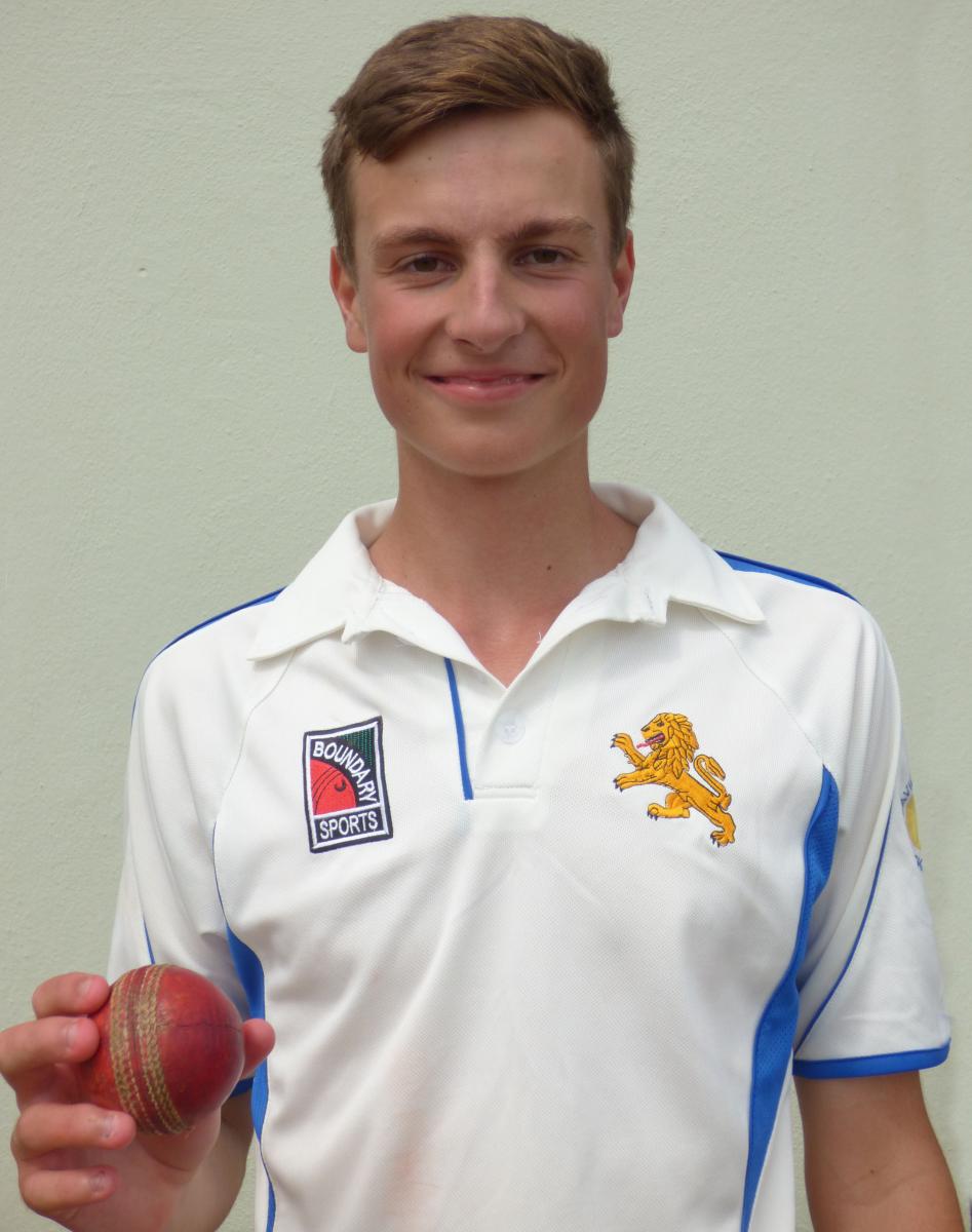 With Somerset Under Seventeens playing their Surrey counterparts four days out of five in their one and three day semi-finals our opponents were unable to consider their better under sixteens and to honour the fixture fielded a predominately under fourteen and fifteen side with two players coming up from Cornwall. The weather for the game was excellent and this would be a less pressurised opportunity of developing our own longer format skills. Somerset won the toss and batted. Jack Gibbs struck in the sixth over bowling Press, his opening partner Szymanski took his first wicket in the ninth with that safe pair of hands Ashley Causey making another catch look easy. From 26-2 Somerset progressed to 67-3 after Yabsley had keeper Reed caught behind by Tom Oxland. Devon bowled thirty-seven overs in the first session and their visitors were nine short of one hundred. In the forty-third over Somerset had progressed to one hundred and fourteen when Leon Horn bowled Hall. Cornwall's Lewis Goldsworthy was batting beautifully and had to sit back and watch a major change in his sides fortunes. The transformation was the result of a remarkable spell from the home sides captain. With Somerset on one hundred and fifty he bowled Samuel, seventeen balls later be bowled Aldridge, he then removed Toohey and Draper in successive balls both bowled. This was the first hat trick in under sixteen history and was an amazing spell of bowling as balls were left only for stumps to be knocked back. Somerset were now 165-9 but Goldmsith and Green started to dent Gibb's figures until the captain bowled Green in the fifty-eight over. Goldworthy was unbeaten on 76. Gibbs had taken, in this spell, six wickets off twenty-five deliveries for twelve runs and he finished with remarkable figures of 11.1-2-31-7, the second best return in under sixteen cricket.
